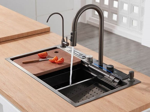 Introducing Best Of The Best. The RUMO Multifunctional Nano Sink With Digital Display and flick buttons to control water dispense. It is the perfect addition to any modern kitchen. Made from durable 304 stainless steel, this sink is built to last. The Nanotech ceramic coating along with honeycomb embossing gives it an elegant black finish, while also making it scratch proof and anti-static, making it easy to clean. The waterfall tap with 4 function water dispense head provides versatility for a variety of uses. The sink also includes a secondary bowl, strainer basket, and other accessories to make it the ultimate multifunctional sink for your kitchen.